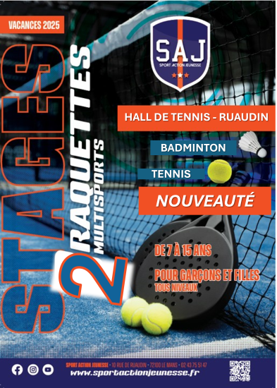 Tu auras au choix le matin, entre séances de badminton, et tennis et selon ce que tu aimes, tu pourras également pratiquer le handball, le basket, le football, la pétanque,... l'après-midi ... Ce sera pour toi, l'occasion de découvrir d'autres sports.